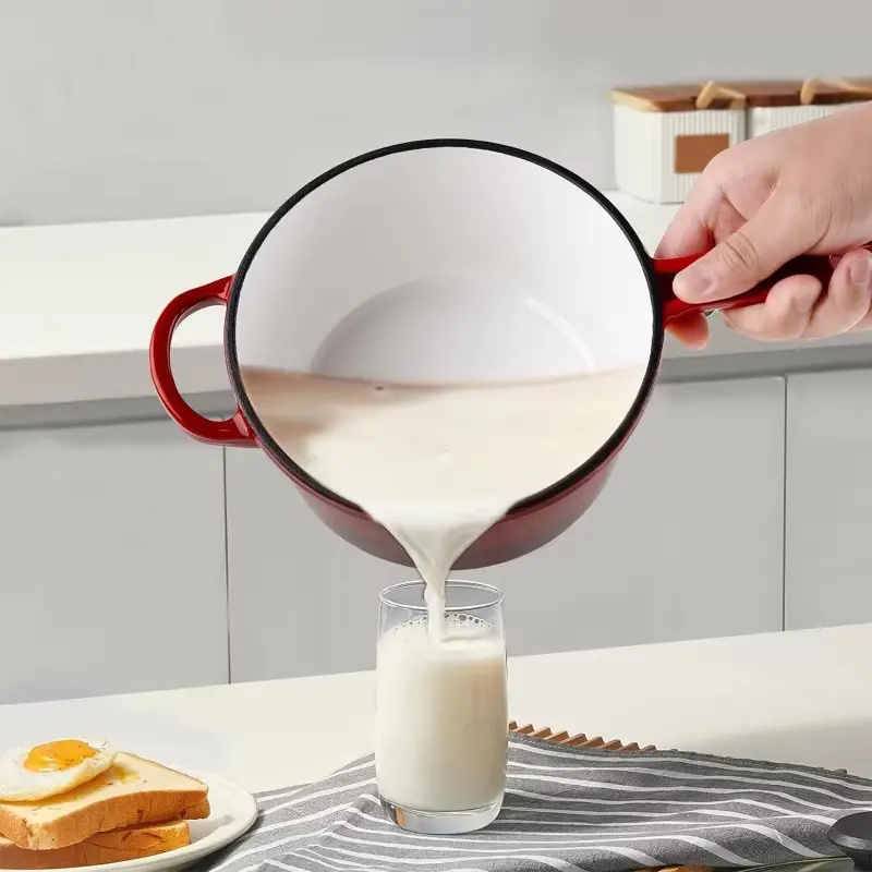- DENSE SEALING SOUP: enameled cast iron saucepan transfers heat evenly, withstand up to 500℉, and raised spots on the lid quickly drop water back into the pot, preventing drying out and coating food in rich broth
