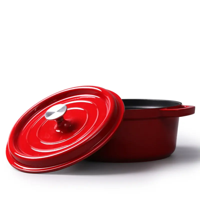 This enameled cast iron dutch oven is suitable for a variety of cooking scenarios including gas, electric, ceramic and induction stoves.The natural insulation of the cast iron pan combined with the enamel surface meet your multiple cooking styles and needs.