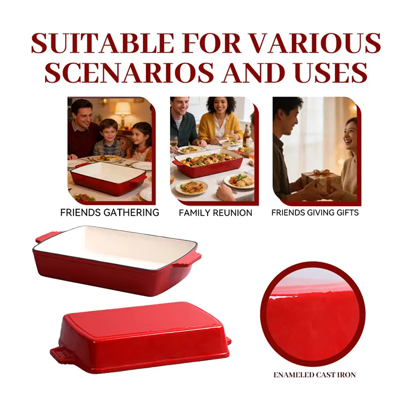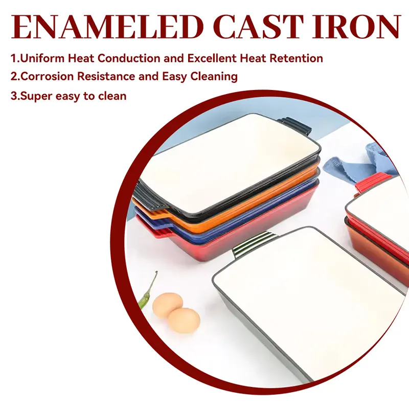 Enameled cast iron bread oven is very friendly for beginners in baking, the bread loaf pan has smooth surface reduces sticky pan and food residue, very easier to clean and maintain. Help you easily make all sorts of bread and cakes,such as sandwich bread, banana bread, black rye bread or meatloaf and other loaf dishes, even can use for small casserole dishes.