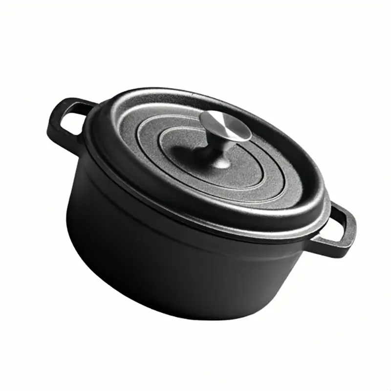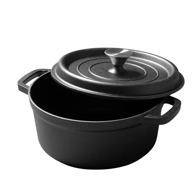 This cast iron dutch oven has a special circular shower design. The water vapor circulates in the pot, which can better maintain the original nutrition of the food during cooking, and also provides the function of heat preservation.
