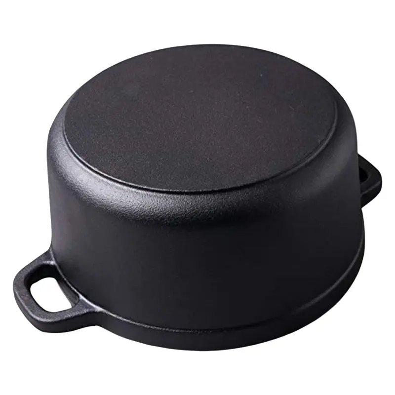 This cast iron Dutch oven has outer diameter of 23cm;height 10.5cm,meticulously designed to serve you for years and decades to come by resisting to temperatures up to 500 degrees F.
