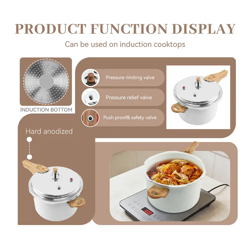 【Compact and Space-Saving】Ideal for cozy kitchens or limited counter spaces, this small pressure cooker delivers full functionality without occupying excess room. Its space-efficient design makes it the perfect compact cooking companion.